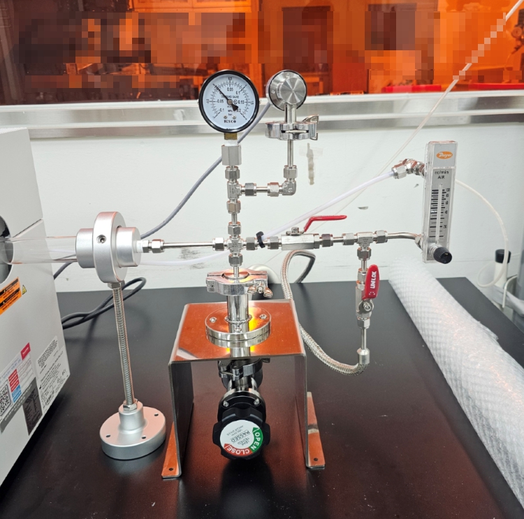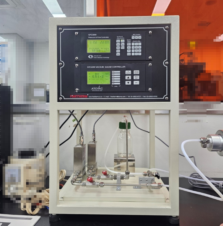 30파이 튜브에 MFC를 연동해 원하는 진공 및 분위기 조건에서 실험 공정이 가능하도록 시스템을 구성하였습니다. 별도의 컨트롤 박스를 제작해 사용과 이동이 편리하며, 버블러 배관 작업 등도 탁상에서 안전하게 수행할 수 있도록 일체형 시스템으로 구현하였습니다.