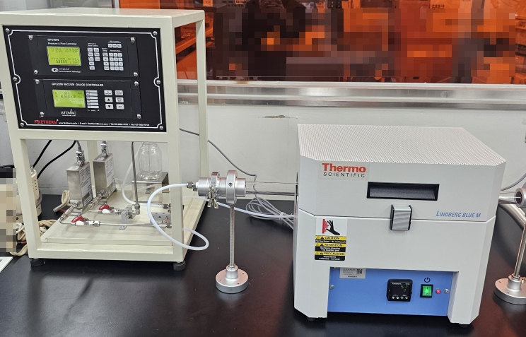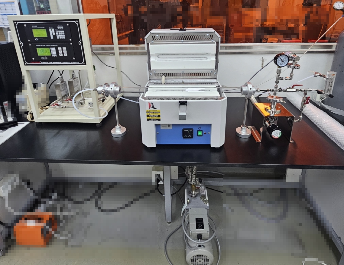 30파이 튜브에 MFC를 연동해 원하는 진공 및 분위기 조건에서 실험 공정이 가능하도록 시스템을 구성하였습니다. 별도의 컨트롤 박스를 제작해 사용과 이동이 편리하며, 버블러 배관 작업 등도 탁상에서 안전하게 수행할 수 있도록 일체형 시스템으로 구현하였습니다.