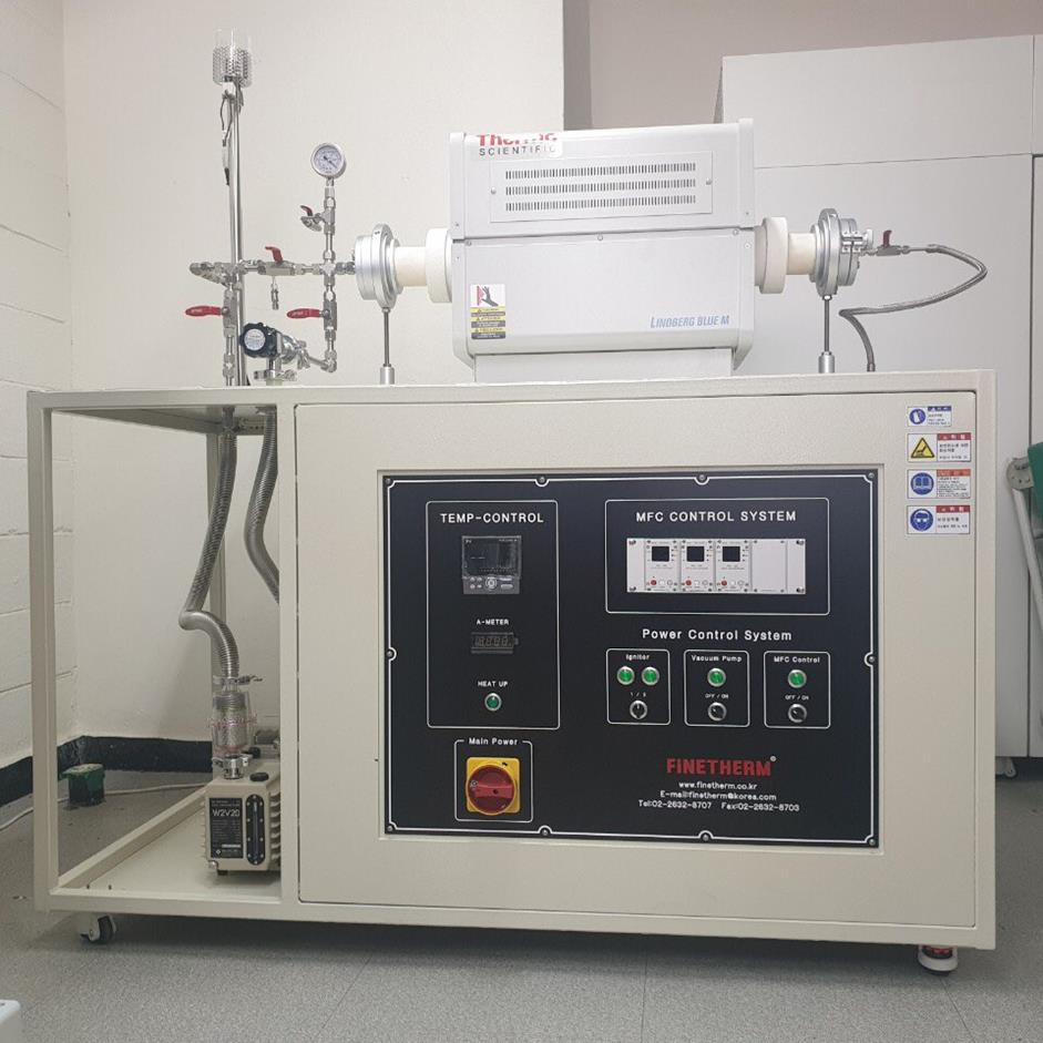 최고온도 1700도 설정으로 프로그램 가능한 타입의 메인 전기로에 MFC, Vacuum, Burn-out 및 Control Box를 추가하여 일반 분위기나 비활성 상태의 분위기 조성을 위한 제어시스템 갖춘 최첨단 장비 입니다.
